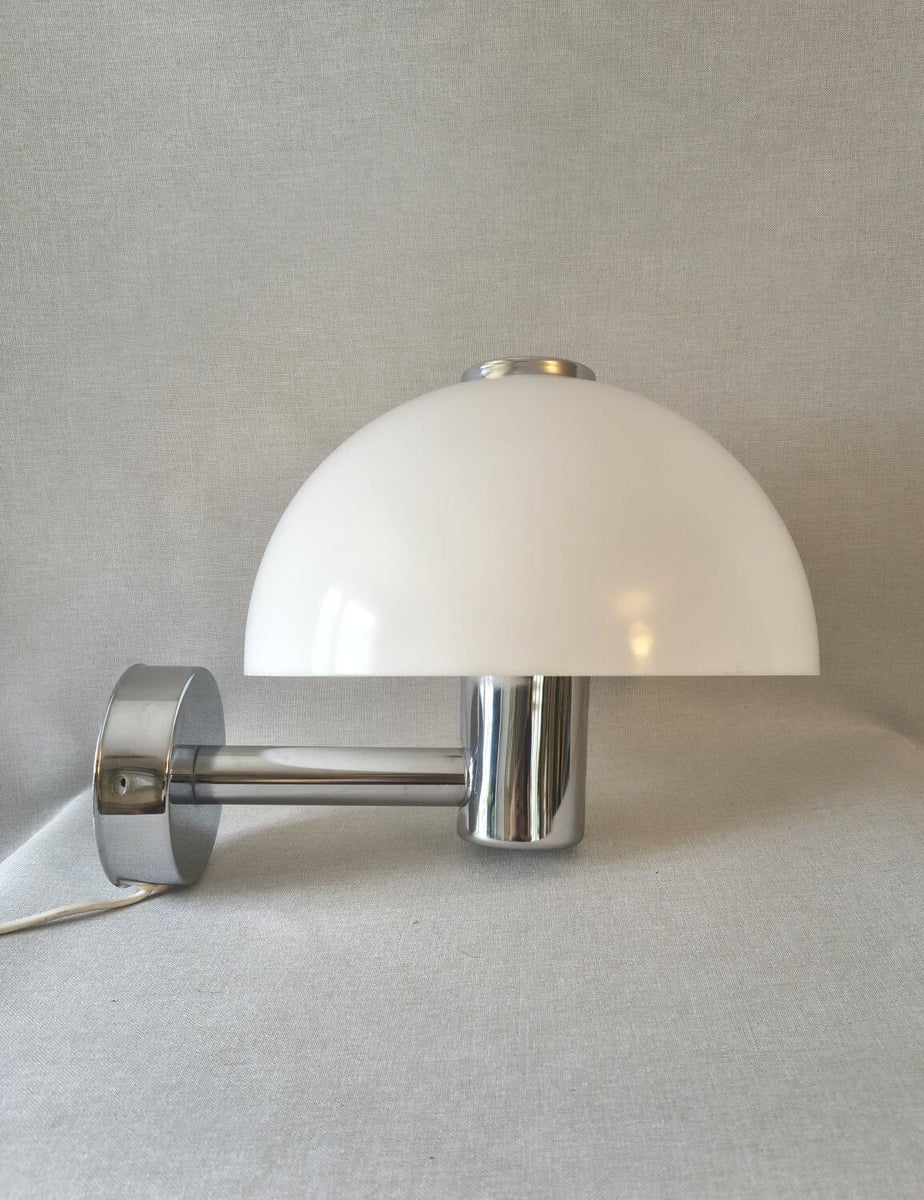 Puolipallon muotoinen valkoinen kupu yhdistyy kiiltävään kromattuun runkoon, luoden tasapainoisen ja arkkitehtonisen kokonaisuuden. Selkeä muoto ja laadukas metallirakenne tekevät tästä Valio-sarjan seinävalaisimesta ajattoman sisustuselementin. Valaisin toimii kauniisti esimerkiksi sängynpäädyssä, eteisessä tai osana modernia seinäkokonaisuutta.